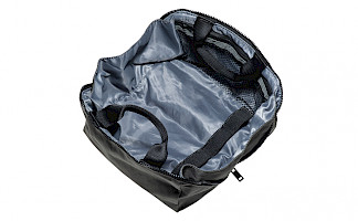 Features 2 exterior side pockets, 5 interior holding straps, 2 interior pockets and 1 zipped mesh pocket.