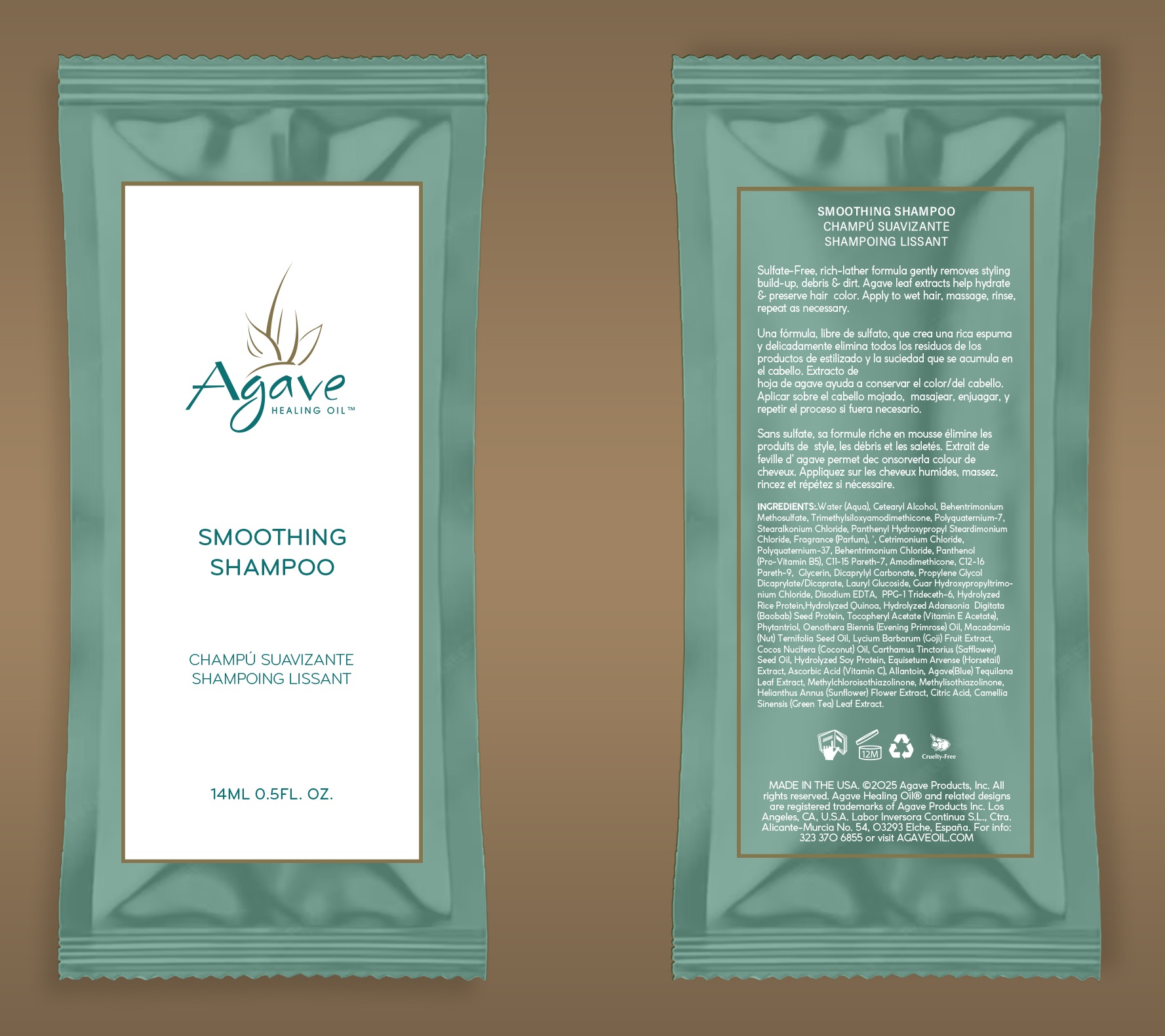 • Le shampooing lissant est chargé de sucres végétaux d'agave qui aident à guérir, contrôler et lisser
